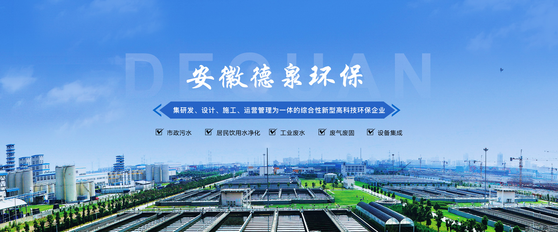 安徽德泉環(huán)??萍加邢薰局铝τ趶U水、廢氣、固廢技術(shù)處理研發(fā)、設(shè)計(jì)、施工及運(yùn)營(yíng)管理,從事環(huán)保設(shè)備及設(shè)施的制造和銷售,為環(huán)保項(xiàng)目系統(tǒng)提供專業(yè)的技術(shù)咨詢和服務(wù)。是一家集建筑勞務(wù)分包,工程總承包(EPC)、項(xiàng)目投資(BOT/PPP)、運(yùn)營(yíng)管理(O&M)于一體的綜合性新型高科技企業(yè)。